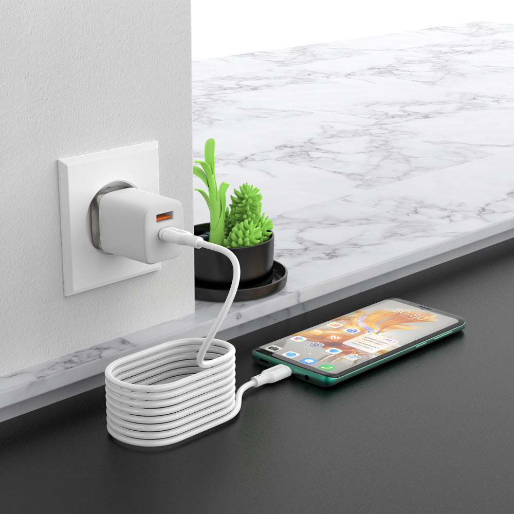 Ricarica e trasferisci dati con velocità e affidabilità. Questo cavo da USB-A a USB-C supporta una corrente fino a 3.5A, ideale per la ricarica rapida di smartphone, tablet e altri dispositivi USB-C.
