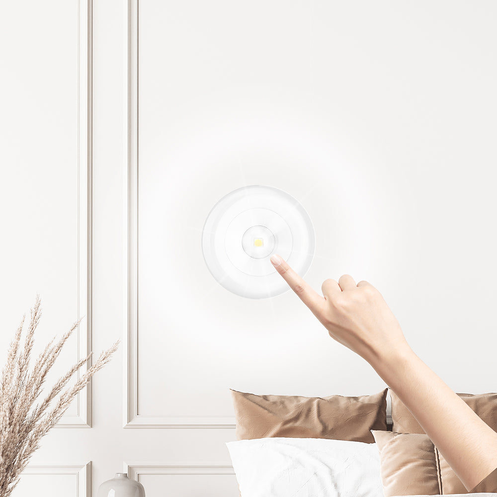 Una luce notturna semplice, pratica e subito pronta all’uso. Perfetta per ogni angolo della casa, questa lampada LED funziona con 3 batterie AAA+ (non incluse) e si accende o spegne premendo il centro. Sul retro è presente un adesivo resistente che permette di fissarla facilmente a pareti, armadi o superfici lisce – senza bisogno di attrezzi. Il coperchio posteriore si apre facilmente ruotando a sinistra o a destra, per sostituire le batterie in pochi secondi.